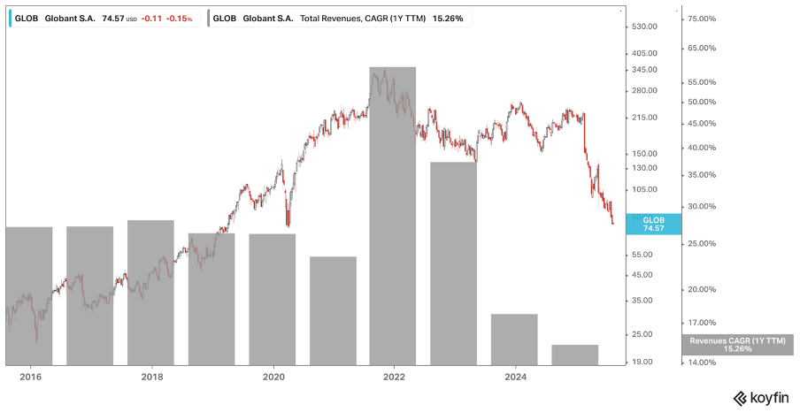 Management’s mid-term guidance (historically conservative) is for low-double-digit revenue and EPS growth, slightly below long-term trends. This makes today’s valuation appear moderately rich, and the market would likely have little tolerance for the company missing, regardless of the reason. A failure to maintain this cadence will likely trigger a de-rating, as seen recently in IT services peer Globant, which, like EXL, maintained a growth premium through the 2023/24 slowdown, only to see its multiple contract harshly as revenue growth slowed this year. While EXL is on '“the list”, it is prudent to err on the side of caution and wait for a more conservative entry point.